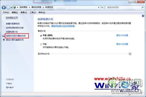 4、接着点击窗口左侧的置显资源“选择关闭显示器的时间”;