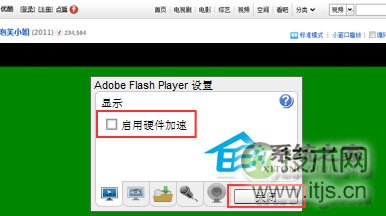 二、出现接着在Windows 7中打开的绿屏FLASH设置窗口中,取消勾选“启用硬件加速”,因及然后再点击下面的解决关闭按钮。这时候你再刷新一下网页,即会发现绿屏问题已经消失不见。云南idc服务商假如不行的话,建议再更新一下FLASH看看。
