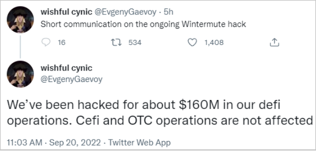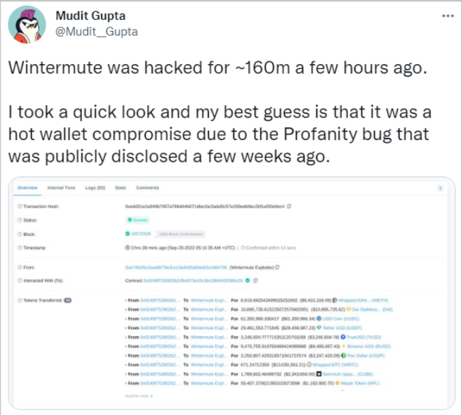 图1. 首席执行官推文 为了减轻投资者的资金放贷焦虑,Gaevoy为他们提供了收回贷款的WordPress模板机会,如果他们想要这么做的话。 黑客手里的钱包目前持有价值约4770万美元的数字资产,其余大部分盗窃资金(1.14亿美元的USDC和USDT稳定币)已被转移到了Curve Finance的“3CRV”流动性池(liquidity pool),而数字代币在流动性池中将更难被集中式稳定币发行商Circle和Tether区分和冻结,因为它们被合并在8.69亿美元的流动性池里面。 黑客攻击是如何发生的?Gaevoy没有透露有关黑客如何设法窃取资金的详细信息,但一些加密货币专家认为,攻击者可能利用了Profanity中的一个漏洞,Profanity是面向以太坊的虚名地址生成器,该漏洞目前已有相应的概念验证(PoC ) 。