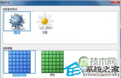 二、雷游接着在打开的外观扫雷程序面板上,点击菜单栏上的“游戏”,在下拉菜单中选择“更改外观”项,即可进入扫雷程序的更改外观设置界面窗口。 三、在其面板上,b2b信息网可以看到扫雷程序提供两种外观样式,包括雷的样式和棋盘样式也可以进行指定,还可以对每局游戏进行随机样式选择。在更换完外观样式后再点击确定按钮进行保存设置。
