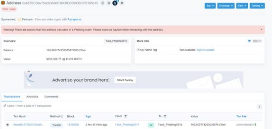 攻击者得手后,在LooksRare和OpenSea上将盗取的NFT卖掉,获得约169.6 ETH。