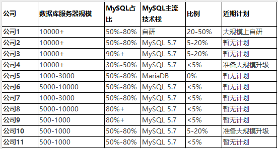 而要想让这件事情获得研发同学的大力支持,就需要平滑升级或者最低成本的改动。所以对于这场迁移的基本要求,云服务器我在心里默默对自己提了要求:零故障,平滑升级。 (一)行业内的MySQL版本数据情况我在2022年底左右调研了下行业内的一些公司的MySQL数据库版本情况,列表如下: