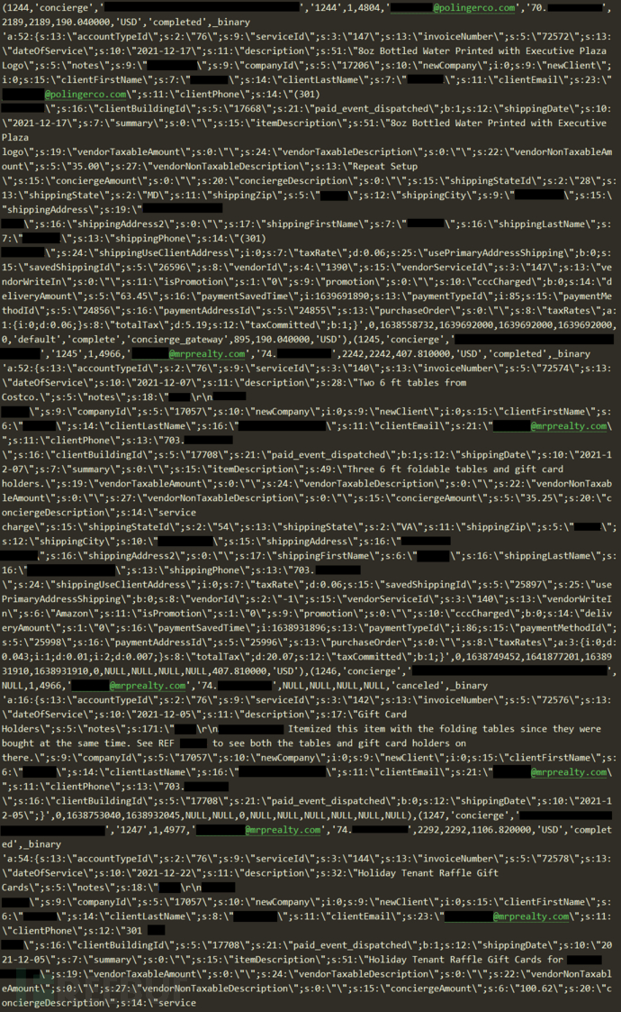 建筑物及其租户清单 此次泄露的数据库还曝光了通过该应用程序发出的指令,其中一些指令包含可能涉及敏感业务信息的备注。这些笔记包括来自不同公司的个人之间的会议细节和会议目的。 在开放目录中发现的文件表明,这些信息可能是b2b供应网在该公司将其系统从 Drupal 7 迁移到 Drupal 9 时泄露的。目前 Simpli 公司暂未对此做出回应。