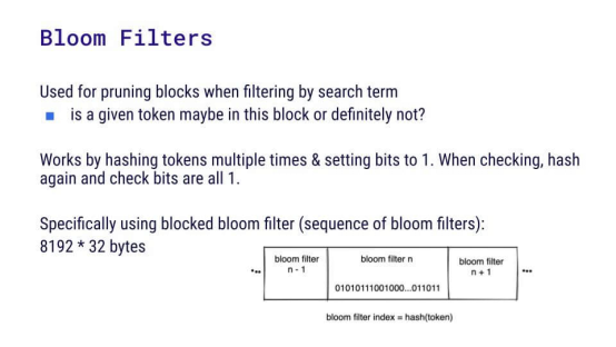 为了优化读取操作,他们使用了布隆过滤器进行高效的数据修剪。Harris解释道:“最终,我们希望支持全文搜索之类的操作。大致来说,当我们将这些文件摄取到系统中时,WordPress模板可以为我们在文件中找到的所有不同的令牌构建一个布隆过滤器。然后,根据特定的查询,我们可以使用这些布隆过滤器来修剪我们需要扫描的数据。” 他们将布隆过滤器存储在块分割的环境中,将它们分成32字节大小的块,以便高效检索。它们独立存储,因此系统不必在查询时读取整个布隆过滤器。