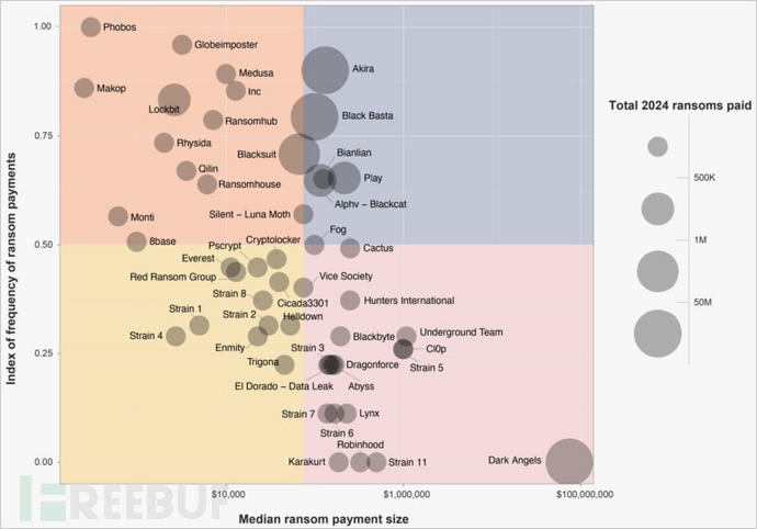 勒索尝试与支付对比 来源:Chainalysis 不再支付赎金尽管2024年勒索软件攻击增加,但赎金支付额下降的原因主要有几个关键因素,高防服务器其中最重要的是受害者的抵抗意识增强。 随着各行业对勒索软件攻击风险的认识提高,企业加大了在网络安全方面的投入,采用了更好的实践,并实施了更强的保护措施。此外,越来越多的组织意识到勒索软件攻击者承诺删除被盗数据的承诺并不可信,加之法律压力,更多组织拒绝谈判。相反,他们宁愿承受声誉影响,并从备份中恢复数据/系统。 另一个导致赎金支付额下降的关键因素是去年针对勒索软件团伙的执法行动。最引人注目的是“Operation Cronos”行动,该行动打击了当时最臭名昭著且最活跃的勒索软件团伙LockBit。再加上ALPHV/BlackCat的退出骗局,使得勒索软件领域变得支离破碎,免费信息发布网尽管RansomHub取得了一定的成功,但较小的团伙未能填补这一空白。 最终,Chainalysis的数据显示,尽管Dark Angels创下了纪录,但2024年的赎金支付中位数有所下降,这表明即使支付了赎金,金额也往往通过谈判被压低。