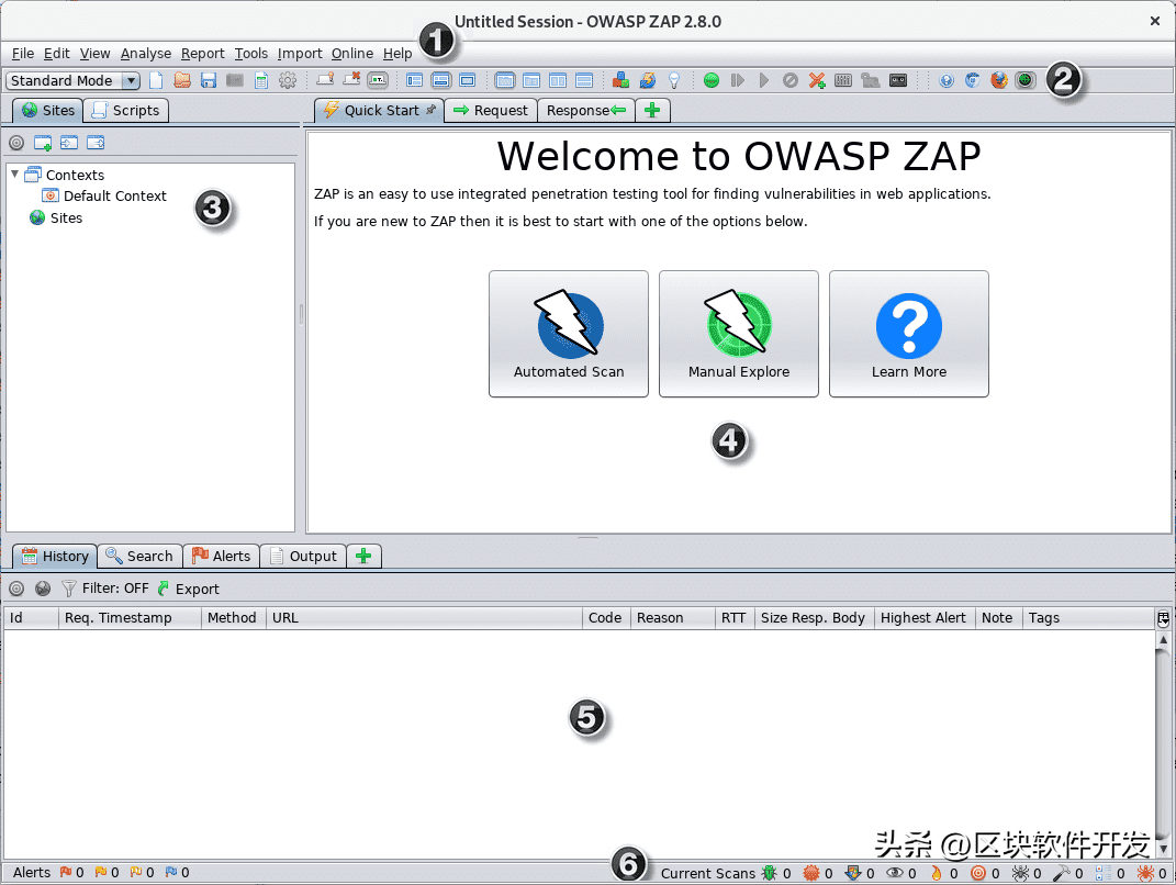 图3 Wapiti可以在不检查代码的情况下对网站和应用程序执行黑盒扫描。相反,Wapiti使用模糊测试技术将攻击载荷注入脚本,并检查常见漏洞。 主要特点支持GET和POST HTTP攻击方法。可以对SQL注入(SQLi)、XPath注入、跨站脚本(XSS)、文件披露、Xml外部实体注入(XXE)、文件夹和文件枚举等执行模块测试。支持HTTP、HTTPS和SOCKS5代理。通过Basic、Digest、NTLM或GET/POST在登录表单上进行身份验证。可以针对域、文件夹、网页和URL执行扫描。优点可以测试众多潜在漏洞。一些测试表明,Wapiti比ZAP等其他开源工具检测出更多的SQLi和Blind SQLi漏洞。缺点没有图形用户界面的命令行工具。需要具备大量的专长和知识才能使用。传送门:https://wapiti-scanner.github.io/ ZAP (OWASP Zed攻击代理):最适合XSS测试