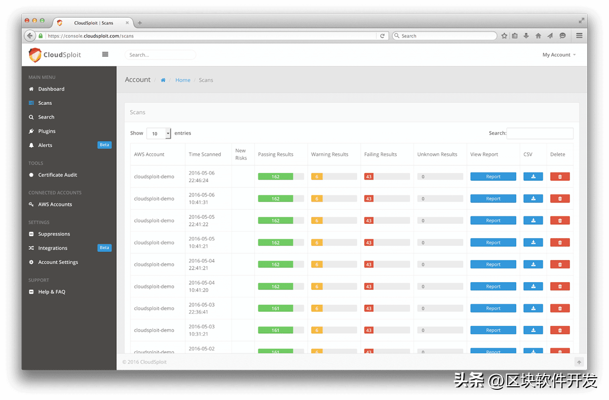 图5 Aqua开放了CloudSploit核心扫描引擎的源代码,以便用户可以下载和修改基础版工具,并享用其好处。CloudSploit扫描可以按需执行,也可以配置成连续运行,并向安全和DevOp团队提供警报。 主要特点针对API使用充分利用REST的接口。API可以从命令行、脚本或构建系统(Jenkins、CircleCL和AWS CodeBuild等)来调用。读/写控制可以为每个API密钥提供特定的权限。每个API调用都可以单独跟踪。为AWS、Azure和Google Cloud提供持续的CIS基准审计。优点实时结果。安全的HMAC256签名用于API密钥验证。在几秒钟内扫描超过95个安全风险。直观的Web GUI。支持HIPAA和PCI(DSS)合规框架。可以通过Slack、Splunk、OpsGenie、Amazon SNS和电子邮件等途径发送警报。缺点无法通过GitHub获取。自动更新推送、一些报告工具和一些集成只针对付费产品(额外功能不是开源的)。传送门:https://cloudsploit.com/ Firmwalker:最适合物联网扫描