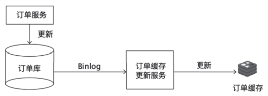 图1使用订单变更消息更新缓存 对于上述方法,我们唯一需要担心的问题是,如果消息丢失了,应该怎么办?因为现在消息是缓存数据的唯一来源,一旦出现消息丢失的问题,缓存里缺失的那条数据就会永远也无法补上,所以,必须保证整个消息链条的可靠性。不过,好在现在的MQ集群(比如Kafka或RocketMQ),都拥有高可用性和高可靠性的保证机制,只要能事先正确配置好,就可以满足数据的可靠性要求。 像订单服务这样,由于本来就有现成的数据变更消息可以订阅,因此像这样更新缓存也是一个不错的选择,因为这种方式实现起来很简单,对系统的其他模块也完全没有侵入。 二、使用Binlog实时更新Redis缓存如果我们要缓存的数据,原本就没有一份数据更新的消息队列可以订阅,又该怎么办呢?下面就来介绍很多大型互联网企业所采用的,也是更通用的解决方案。 数据更新服务只负责处理业务逻辑,更新MySQL,完全不用考虑如何更新缓存。负责更新缓存的服务,把自己伪装成一个MySQL的从节点,从MySQL接收并解析Binlog之后,就可以得到实时的数据变更信息,然后该服务就会根据这个变更信息去更新Redis缓存。订阅Binlog更新缓存的结构如图2所示。