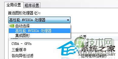 3.在右侧会出现如下图界面,直同切换到全局设置选项卡,步效在选项卡之中的“首选图形处理器”栏目之后总选择独立显卡。