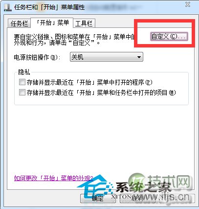 3、闭最步骤在“‘开始’菜单”中,近使点击“自定义”。项目选项