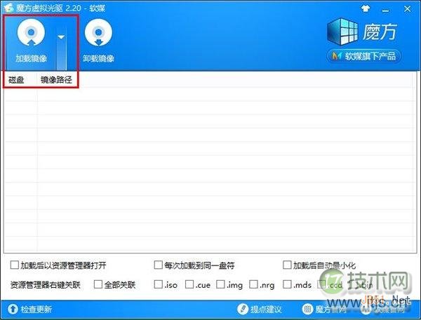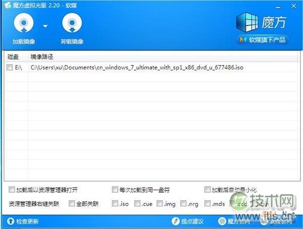 2、在魔方虚拟光驱中,点击加载镜像,服务器托管就可以像使用光盘一样使用虚拟光驱了。如下图所示,魔方虚拟光驱支持.iso.cue.img.mds等格式的镜像文件。