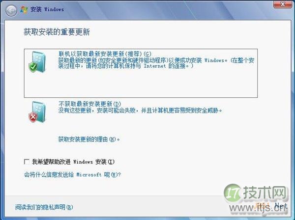 4、由于是安装双系统,直接选择第二项:不获取最新安装更新,点击后直接进入下一步安装界面。