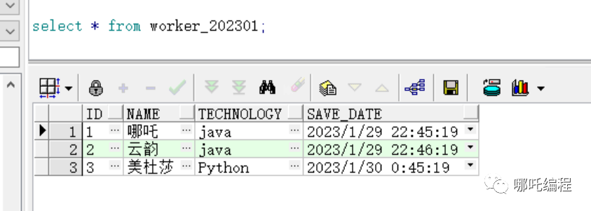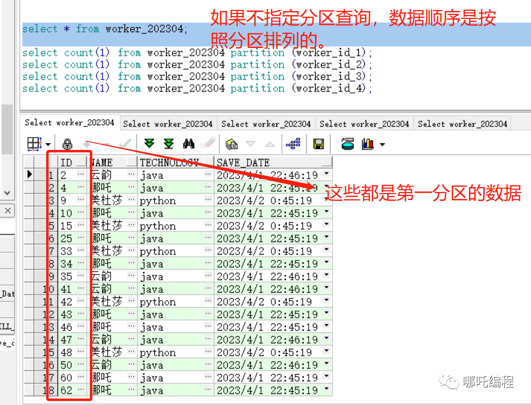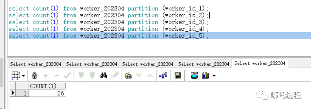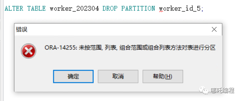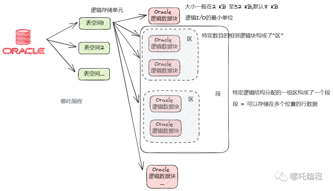 六、小结使用Oracle这么久,第一次系统的了解Oracle的存储结构,Oracle -> 表空间 -> 段 -> 区 -> 逻辑数据块。 了解了Oracle分区表技术适用于哪些场景、何时分区、分区表的分类,并通过SQL实例进行了实战演练。 本文转载自微信公众号「哪吒编程」,可以通过以下二维码关注。转载本文请联系哪吒编程公众号。