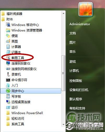 6、截图功能。 在“开始”界面的“附件”里,新增加了一个“截图”功能,可以方便你存储无法复制保存的图片和信息。