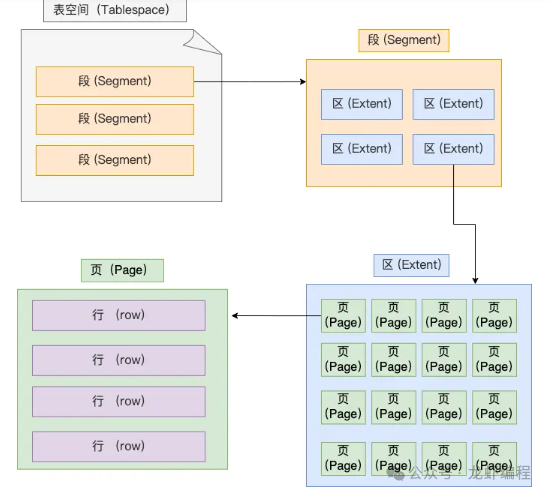 在database为名的目录存在三个文件,这些文件的存储含义如下所示: (1)db.opt用来存储当前数据库的默认字符集和字符校验规则。 (2)gonggao.frmgonggao的表结构会保存在这个文件。在Mysql中建立一张表都会生成一个.frm 文件,该文件是用来保存每个表的元数据信息的,主要包含表结构定义。 (3)gonggao.ibdgonggao的表数据会保存在这个文件。当然表数据既可以存在共享表空间文件(文件名:ibdata1)里,也可以存放在独占表空间文件(文件名:表名字.ibd)。 通过参数innodb_file_per_table控制可以设置表数据存储位置,若设置参数innodb_file_per_table=1,则会将存储的数据、索引等信息单独存储在一个独占表空间(MySQL5.6.6版本开始,该参数的默认值为1,既就是表的数据都存放在一个独立的.ibd文件)。Mysql8后,frm文件和idb文件合并成一个文件了,没有frm文件了。 2、b2b信息网idb文件的结构表空间由段(segment)、区(extent)、页 (page,InnoDB与磁盘交互的单位)、行(row,具体存储数据) 组成,InnoDB存储引擎的逻辑存储结构如下图: