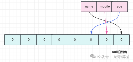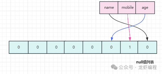 此时的mobile字段值为null,使用二进制表示如下图所示: