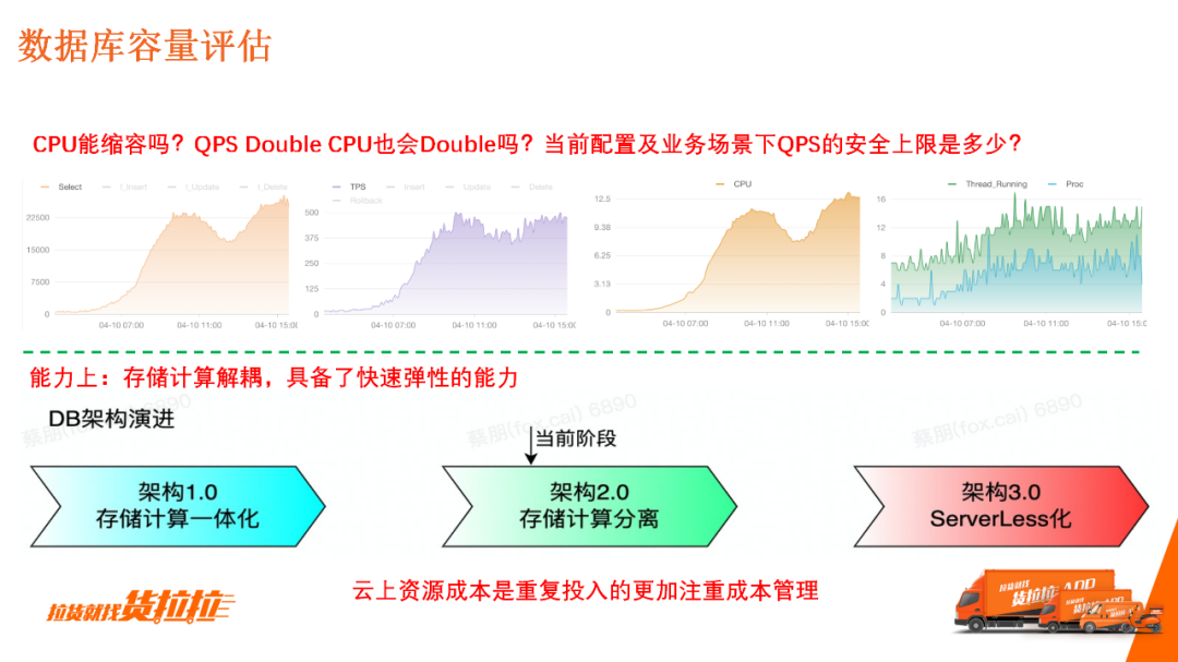 基于云上技术的红利,从存储计算一体化的架构演进为存储计算分离的架构,具备了快速容量弹性的能力。未来目标是做到ServerLess化,但目前仍需要一些时间和数据进行验证。 虽然实现了存算分离实现快速扩缩容,但是容量评估仍旧是根据DBA经验来判断的,缺乏一些相应的数据支撑。 2.数据库容量压测1)BenchMark