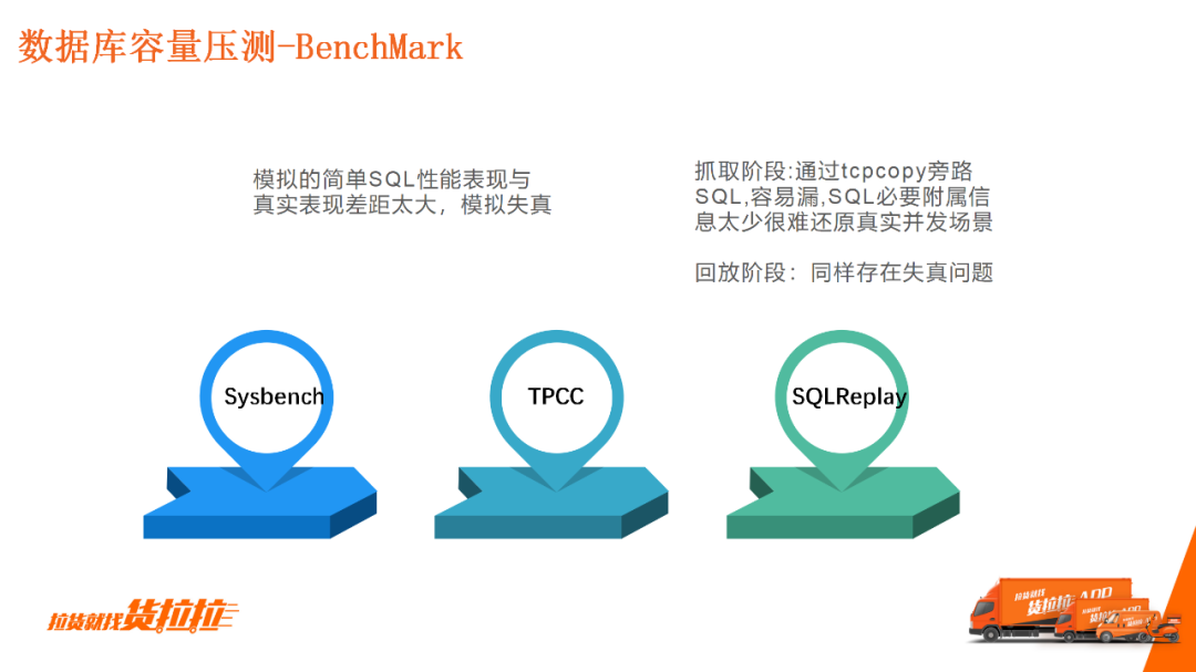 由于BenchMark压测与真实环境的SQL表现差距巨大,因此不能用于容量评估。 近年来流行的SQLReplay等流量回放工具,核心就是利用抓包的方式将SQL记录下来然后机械能回放。它主要的问题是:一方面抓包容易缺漏,另一方面是SQL维度信息缺失难以支持还原真实场景。 2)全链路压测