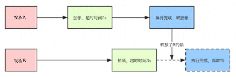 线程A加锁同时设置超时时间5秒,结果5s之后程序逻辑还没有执行完成,锁已经释放。线程B此时也来尝试加锁并获得了锁,这时线程A业务执行完成,释放锁,结果释放了线程B持有的锁。也就是说锁被别的线程误删了。如何解决呢?这里就用到了前面提到的UUID,给value值设置一个标记当前线程唯一的随机数,在删除的时候,校验一下。同时,判断是不是当前线程加的锁和释放锁也要保证原子性。 复制// 使用Lua脚本进行解锁操纵,解锁的时候验证value值 public boolean unlock(Jedis jedis,String key,String value) { String luaScript = "if redis.call(get,KEYS[1]) == ARGV[1] then " + "return redis.call(del,KEYS[1]) else return 0 end"; return jedis.eval(luaScript, Collections.singletonList(key), Collections.singletonList(value)).equals(1L); }1.2.3.4.5.6.完成了锁的获取、锁的释放,这就OK了嘛?然而,并非如此。继续... Redission(1)超时释放在分析锁误删问题时提到,线程A设置了5秒超时,但5秒内,业务并未执行完成,而锁已超时释放,从而导致了线程A和B同时持有了锁。如何解决呢?把锁过期时间设置长一些,算是一种解决方案,有没有更好的呢?其实我们设想一下,是否可以给获得锁的线程,开启一个定时守护线程,每隔一段时间检查锁是否还存在,存在则对锁的过期时间延长,防止锁过期提前释放。这其实就是开源框架Redission采用的思路。