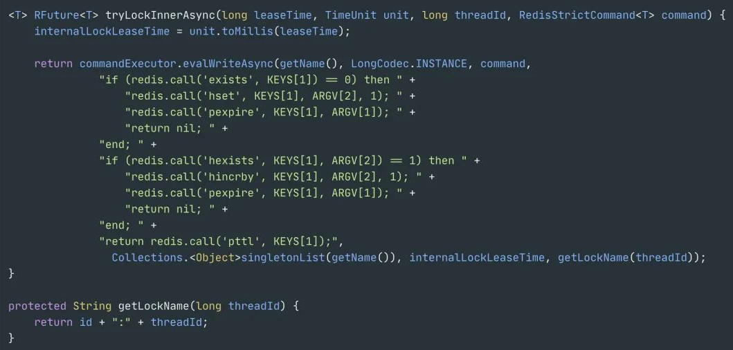 redission watchdog (源于网络) 只要线程一加锁成功,就会启动一个watch dog看门狗,它是一个后台线程,会每隔10秒检查一下,如果线程1还持有锁,那么就会不断的延长锁key的生存时间。因此,Redisson就是使用watch dog解决了锁过期释放,业务没执行完问题。 (2)可重入另外还有一个问题,上述实现并非可重入锁。所谓可重入锁,即当线程在持有锁的情况下再次请求加锁,如果一个锁支持一个线程多次加锁,那么这个锁就是可重入的。如果一个不可重入锁被再次加锁,由于该锁已经被持有,再次加锁会失败。Redis 可通过对锁进行重入计数,加锁时加 1,解锁时减 1,当计数归 0 时释放锁。Redission中也有相关的实现。