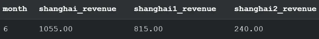 在 SQL 高级查询中使用 CTE主查询中可以使用多个 CTE。下面的示例中介绍如何使用多个 CTE 对复杂的 SQL 语句进行简化。 假设要显示某个城市的月销售额,以及该城市中每个分店的销售额。 在本例中,先创建两个 CTE。再在主查询中把这两个 CTE 连接起来。服务器租用 复制1WITH shanghai1_monthly_revenue AS ( 2 SELECT 3 EXTRACT(MONTH FROM date) as month, 4 SUM(unit_price * quantity) AS revenue 5 FROM sales 6 WHERE EXTRACT(YEAR FROM date) = 2024 7 AND branch = Shanghai-1 8 GROUP BY 1 9), 10shanghai2_monthly_revenue AS ( 11 SELECT 12 EXTRACT(MONTH FROM date) as month, 13 SUM(unit_price * quantity) AS revenue 14 FROM sales 15 WHERE EXTRACT(YEAR FROM date) = 2024 16 AND branch = Shanghai-2 17 GROUP BY 1 18) 19SELECT 20 s1.month, 21 s1.revenue + s2.revenue AS shanghai_revenue, 22 s1.revenue AS shanghai1_revenue, 23 s2.revenue AS shanghai2_revenue 24FROM shanghai1_monthly_revenue s1, shanghai2_monthly_revenue s2 25WHERE s1.month = s2.month1.2.3.4.5.6.7.8.9.10.11.12.13.14.15.16.17.18.19.20.21.22.23.24.25.在上述代码中,定义了 shanghai1_monthly_revenue 与 shanghai2_monthly_revenue 两个 CTE,使用这两个 CTE 获取 2024 年上海各分店的月销售额。 接下来,使用 month 列连接这两个 CTE,并把两个分店的销售额相加,以获取上海的总销售额。 查询结果如下。