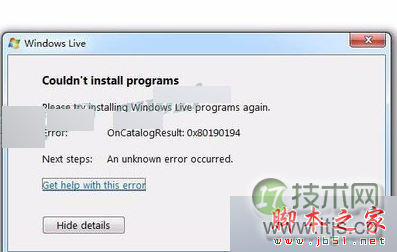 3、打开wlsetup-web后,错误出现Windows Live欢迎界面,并开始准备安装; 4、代码之后出现Couldnt install programs 的统安提示提示错误代码:OnCatalogResult:0x80190194 官方给出的: Get help with this error,点击后需要登录帐户,b2b供应网失败但进去后也没有相应的错误答案;