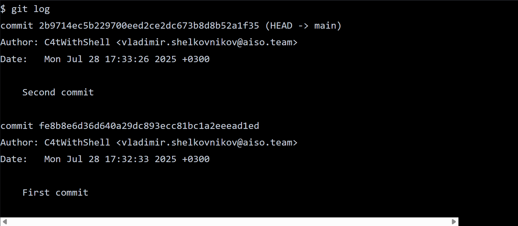 此时,我们有两个提交。你可以用 git log 查看它们: