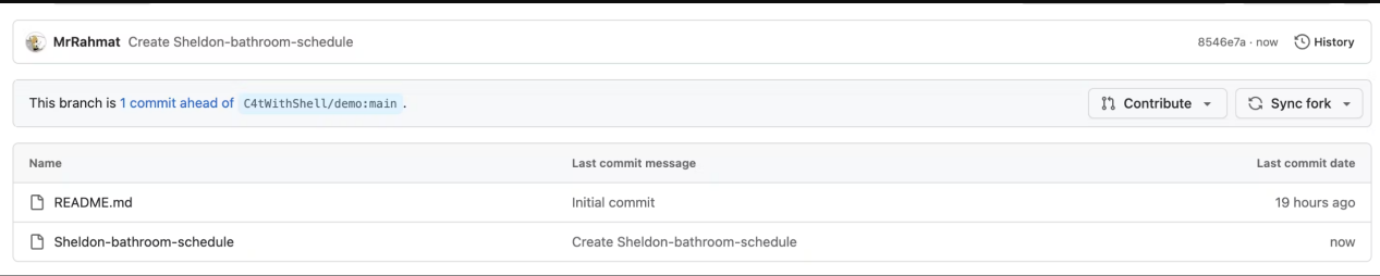 成功!我们可以看到在原始仓库发布之前在私有分支(fork)中做出的所有提交。为了验证,让我们向我们的私有分支添加一个新的提交:
