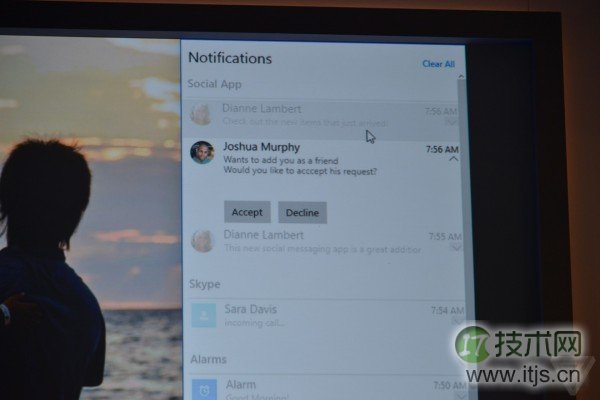 这是全新的Action Center ,能够开启/关闭WiFi和蓝牙,Action Center 同时也是一个通知中心。