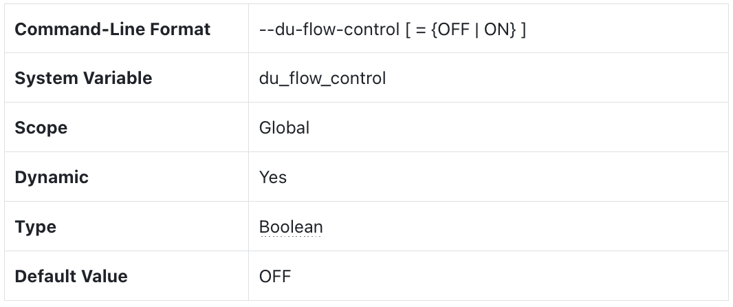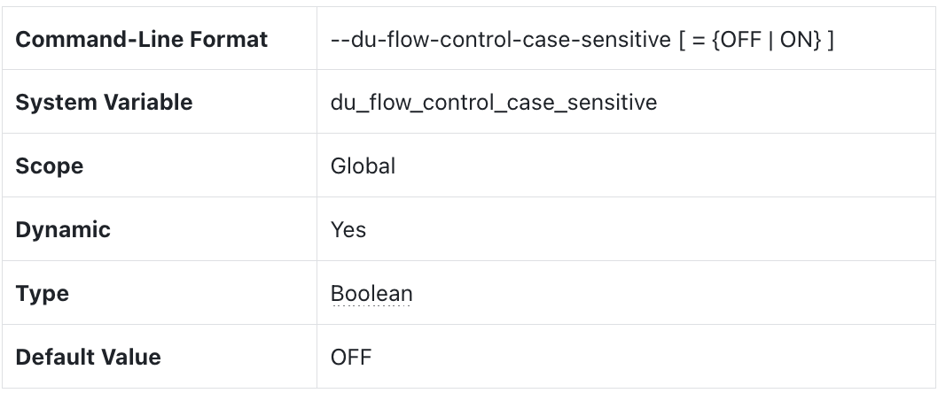 用于控制限流功能是否启用。 大小写敏感命令(du_flow_control_case_sensitive)