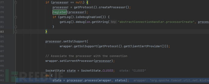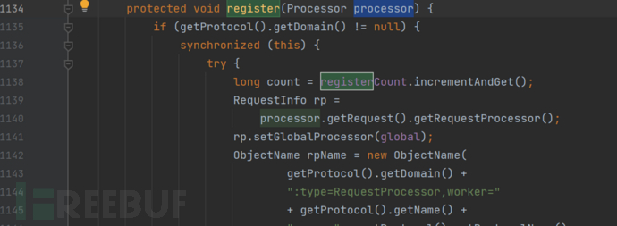 我们可以知道,这个processor对象是获取的是当前的Http11Processor对象, 对于register方法,我们可以跟进一下。