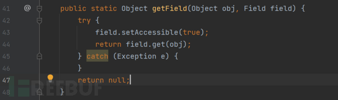 这样,一条链子进行成了 总结一下: StandardService==>connector==>Connector.protocolHandler==>Http11NioProtocol.handler==>AbstractProtocol$ConnectionHandler.global==>RequestGroupInfo.processors==>RequestInfo.req 构造回显内存马非持久化这种应该也不算是内存马吧,也就是每次发送发序列化数据的时候,通过利用获取的request / response进行命令执行和回显。 对于实验的环境同样使用的是前面一样的环境 -- 使用springboot搭建的环境, 我首先创建了一个getField方法方便获取属性值。